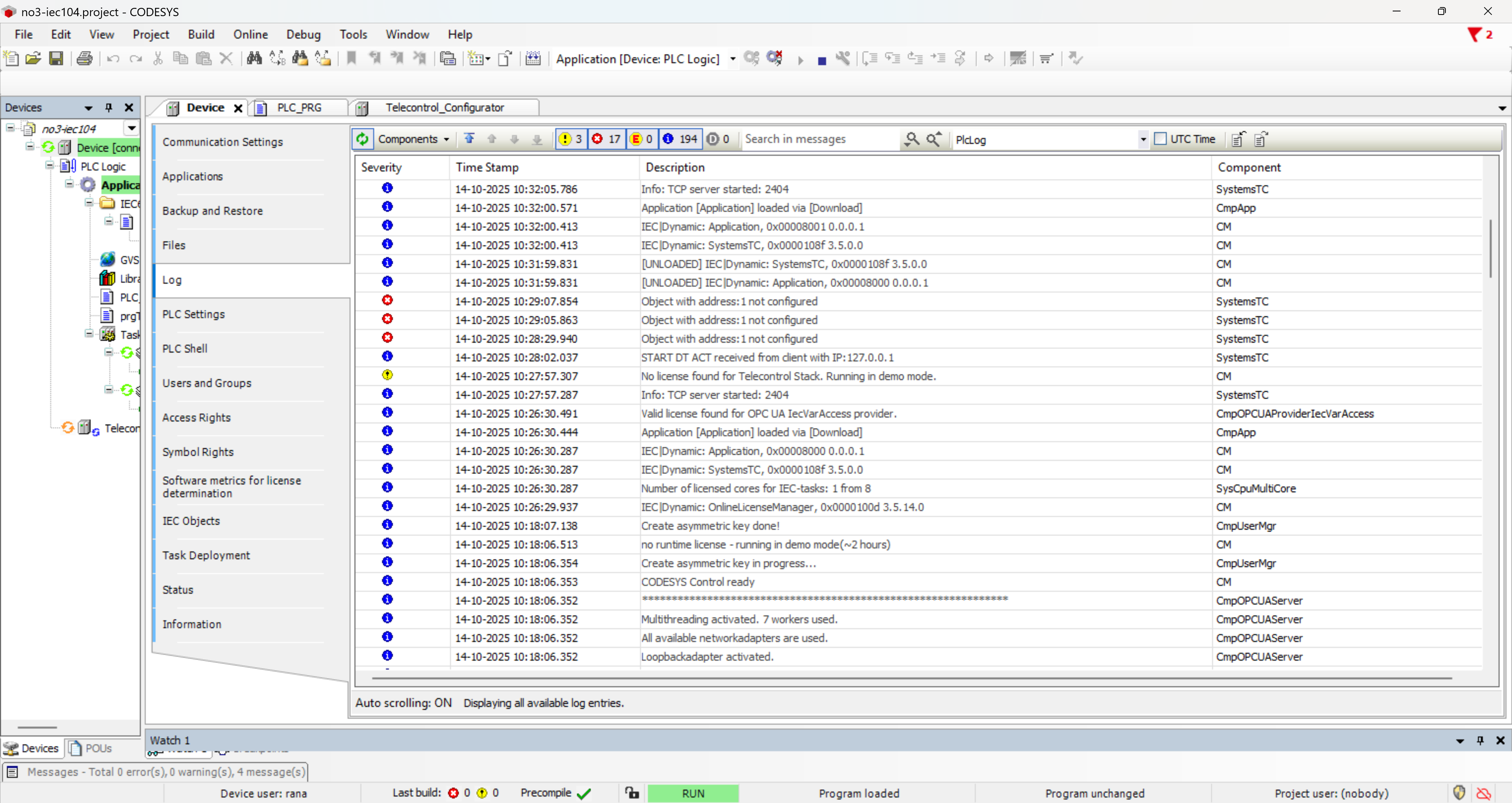 We are able to see the log data as the status of triggering the SCS from Client received to the Log data of the codesys device(attached screen shot of it) and in simulator panel we had set the details to trigger the data from Redisant to Codesys.