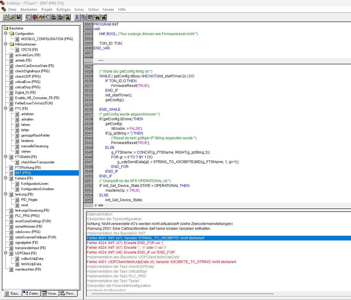 Ich wollte eigentlich nur Online gehen aber Codesys übersetzt das Offline Prg. und meckert das die nicht in Ordnung ist. Das Offline-Prg. ist das Original-Prg. villeicht könnt ihr mir weiter helfen Bild s. Anhang