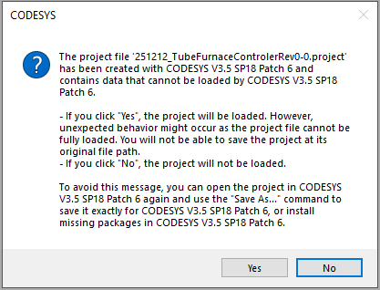 I'm building up a 2nd PC to match an existing developer PC. Installed the same SP and Patch levels but when I open a project that was created on the existing PC, Codesys complains that it's not the same version. Attaching a screenshot..... What else is there to match? Also, can all of the libraries that are on the existing machine be copied from it to the new machine and if so, how? (So I get the same versions) Which files/folders do I copy?