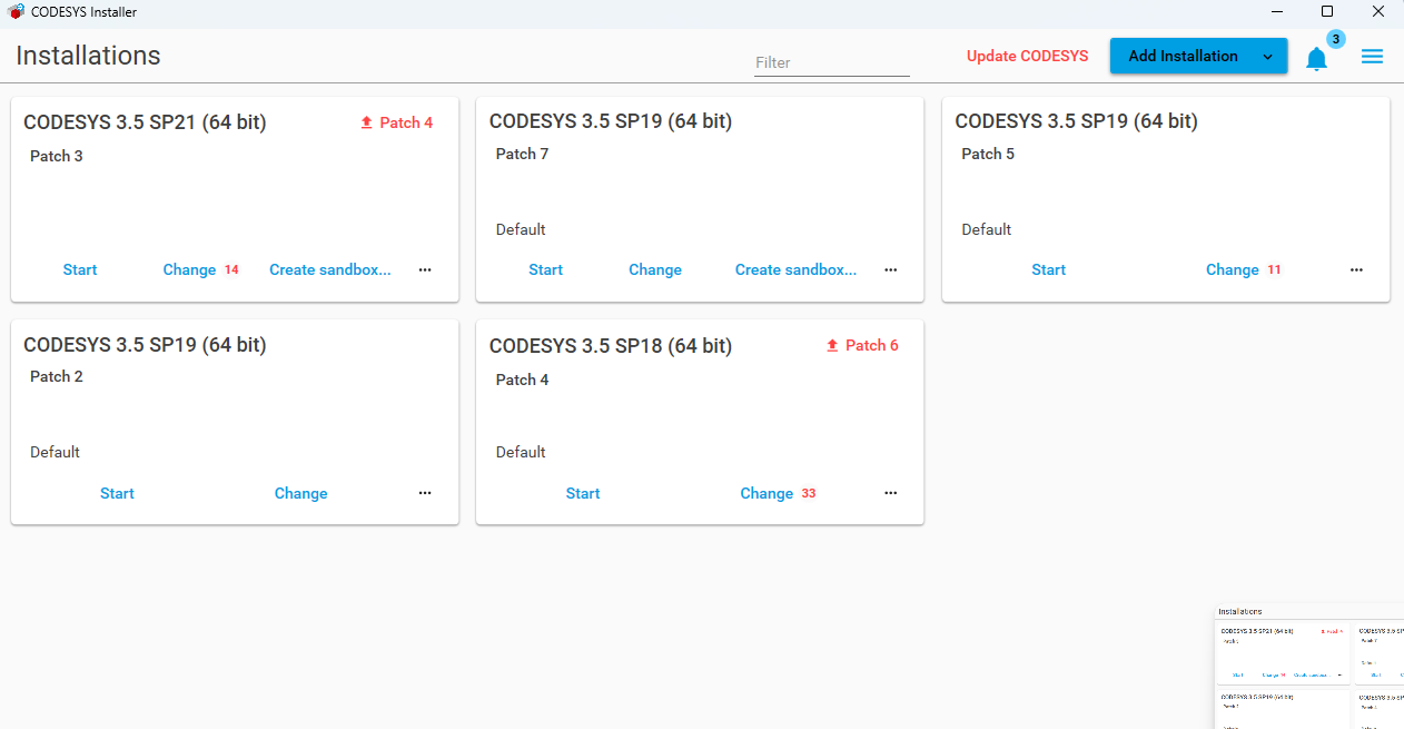 The projects we have made (with several persons) are in differents versions, Codesys V3.5 sp18 patch4, V3.5 sp19 patch 2, V3,5 sp19 patch 5 etc V3.5 sp21 patch 3 etc..