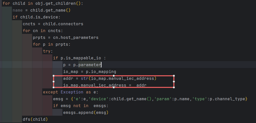If I directly set the automatic_iec_address in class ScriptIoMapping to False, the address becomes None. So I reset manual_iec_address with itselfs value. It only work with the Input IOMapping . For output, it reports an error: "Invalid address: The channel type 'Output' requires address type '%Q'."