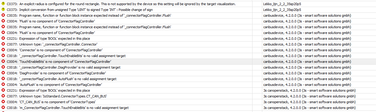 Ive got a project with 6 devices . Version 3.5.9.2 Now i change one to a other device 3.5.20.40 So i update the project to V3.5.20.4 Now i have a lot off faults in the canopendevices . Somehowe the first has no problem and seems that the canopenstackts stays in V3.5.9.2 the others in V4.2.0.0 But i cant put it back to 3.5.9.2 WHY ? And how can now witch one i can update and witch one not ?