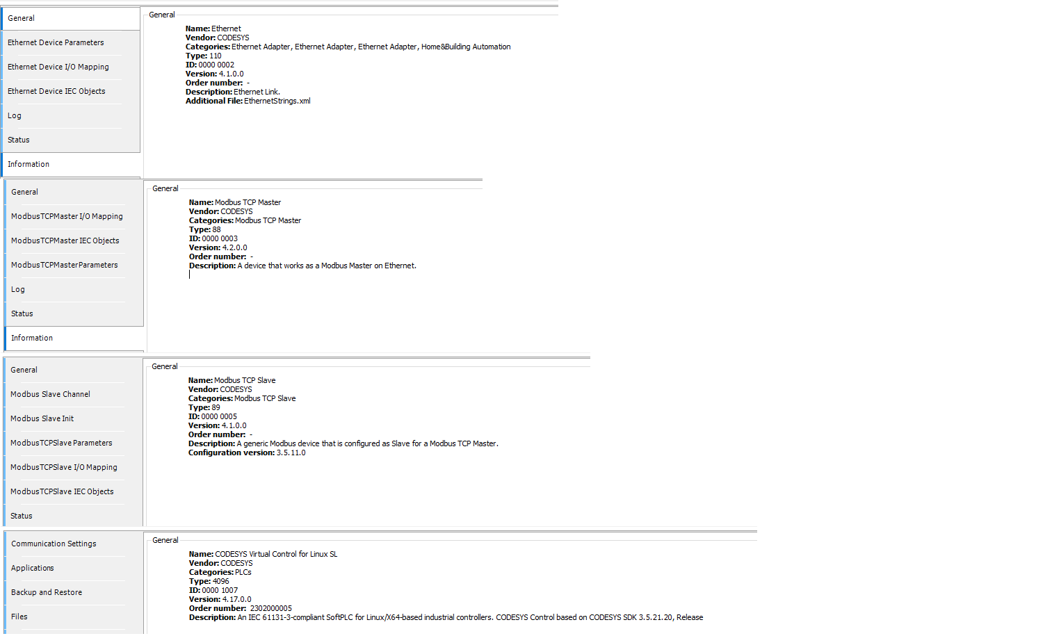The version of the Codesys components are listed in the picture Versions.png