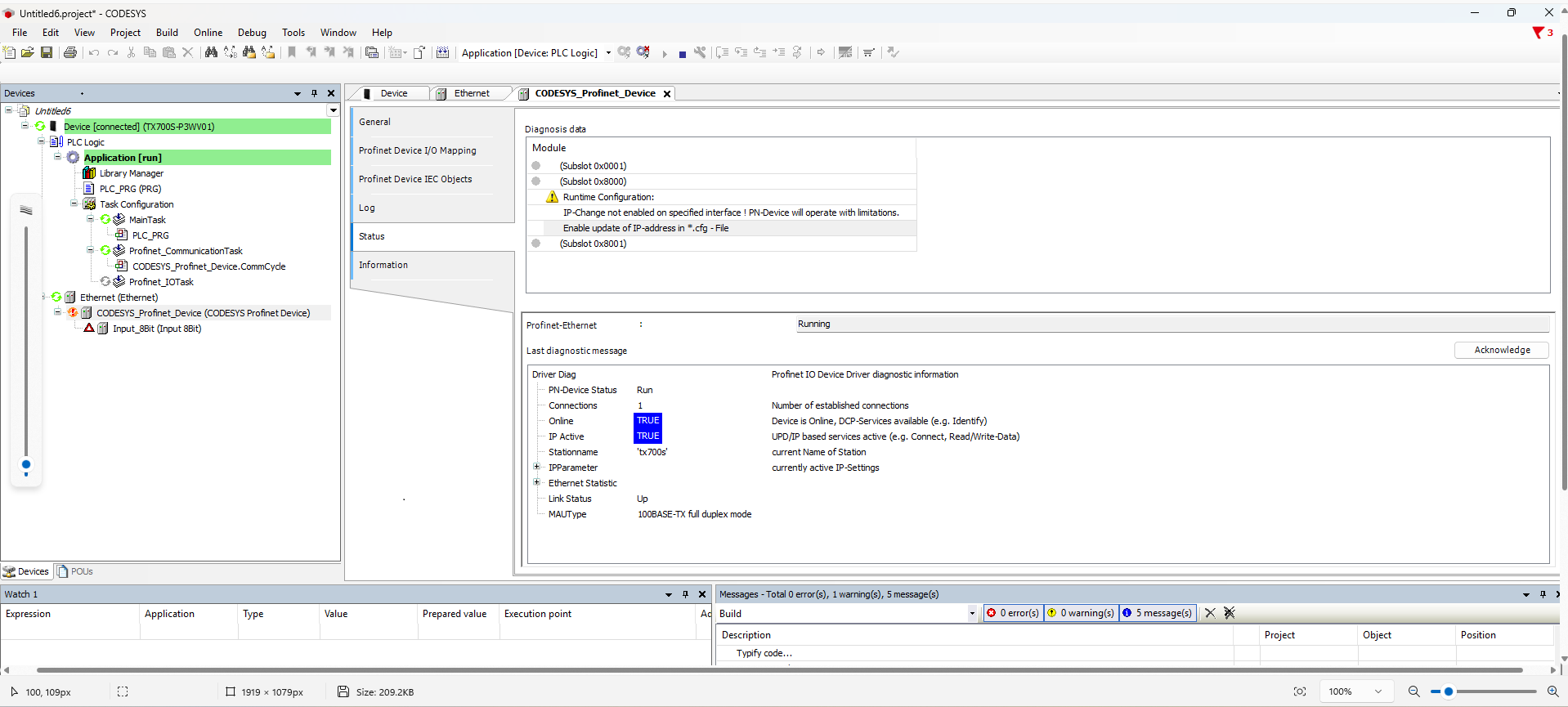 I'm operating a SIEMENS CPU1516 as PROFINET controller with the CODESYS_Profinet_Device in TIA 15.1. The CODESYS_Profinet_Device is operating with the CODESYS Control Win V3.