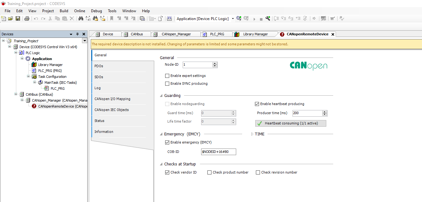 I am trying to use the CAN open example to read a CAN line but for the CANopenRemoteDevice it has a question mark next to it and says I need the required device description. How do I resolve this? or find the .eds file.