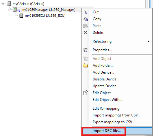 With the latest version of Codesys, itβs now possible to import DBC files directly into the J1939 Manager, which is great. However, Iβm trying to achieve the same thing programmatically and canβt find any scripting functions related to