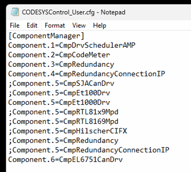 Component added in the Configfile.
