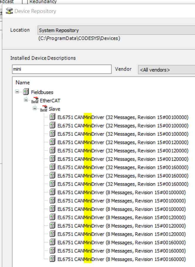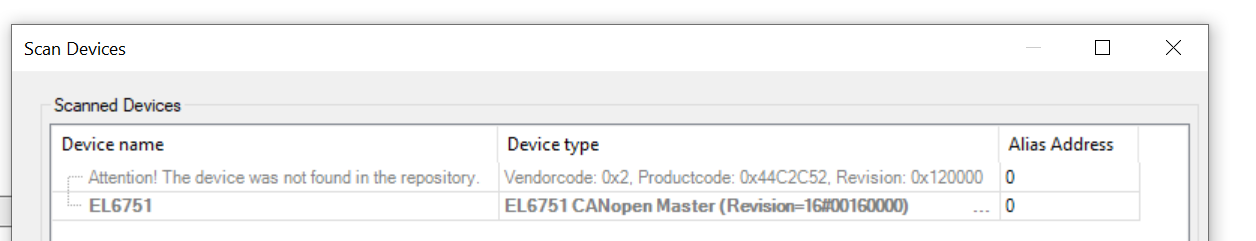 I have working EtherCAT since it can be scanned for slaves, but then I'm stuck getting the information that the device isn't found in the repo. As far as I can see both revisions does however exist in the device repo.