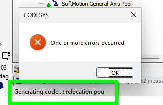 The only clue I get from the system that this messages is displayed during "Generating code..: relocation pou".