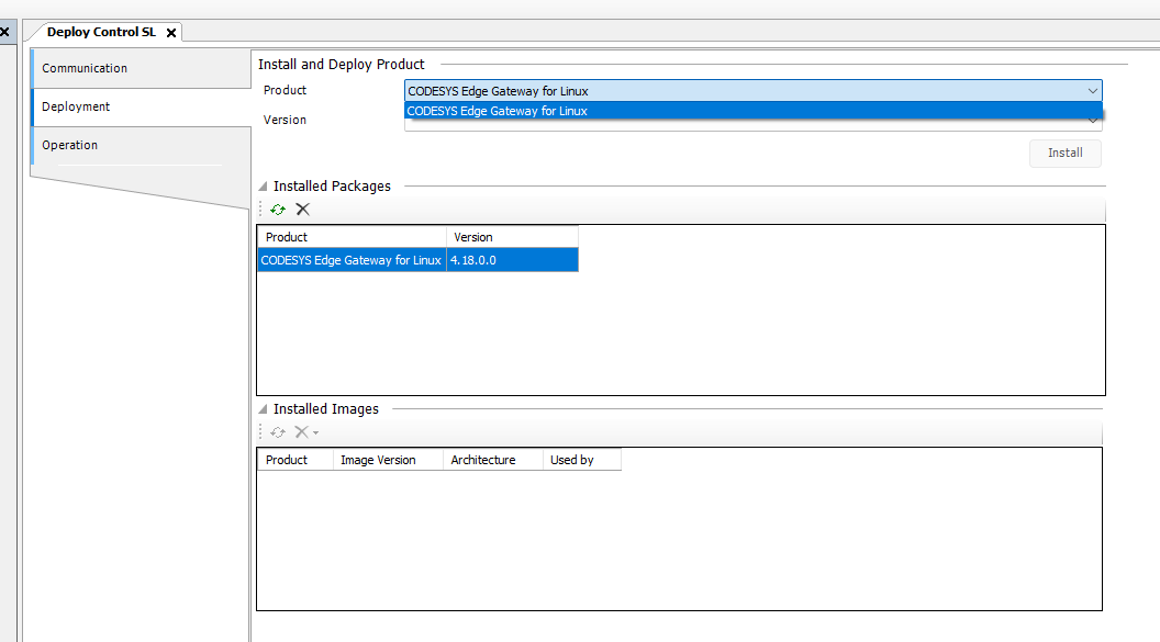 In the process of fault finding I removed the control SL entirely from my target, then I had to revert to version 3.5.21.0 SP 1 to re-install "Control SL 4.17.0.0". So I thought it was just a matter of using SP1 to update also to 4.18.0.0, but after installing the files for 4.18.0.0 in the SP1-version, the behavior was identical to SP4, ie no Control for Linux SL shown in the deploy tool..