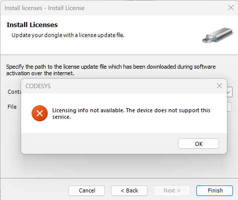 I tried using "Install license" using the .WibuCmRau file for the corresponding license and got the following message: