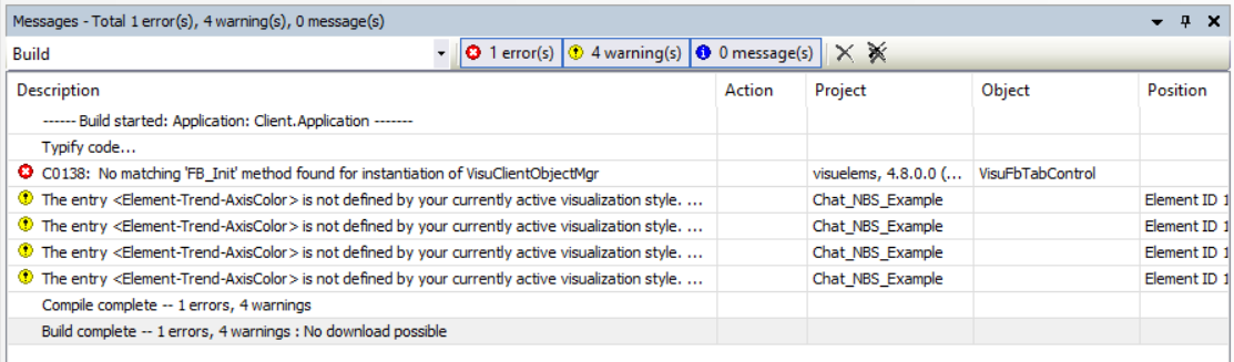 "C0138: No matching 'FB_Init' method found for instantiation of VisuClientObjectMgr" etc